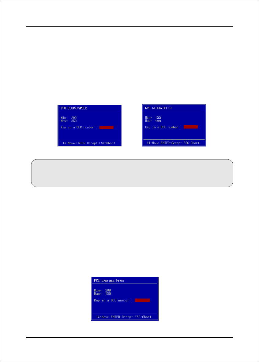 Key in the DEC (decimal) number for the CPU CLOCK/SPEED.